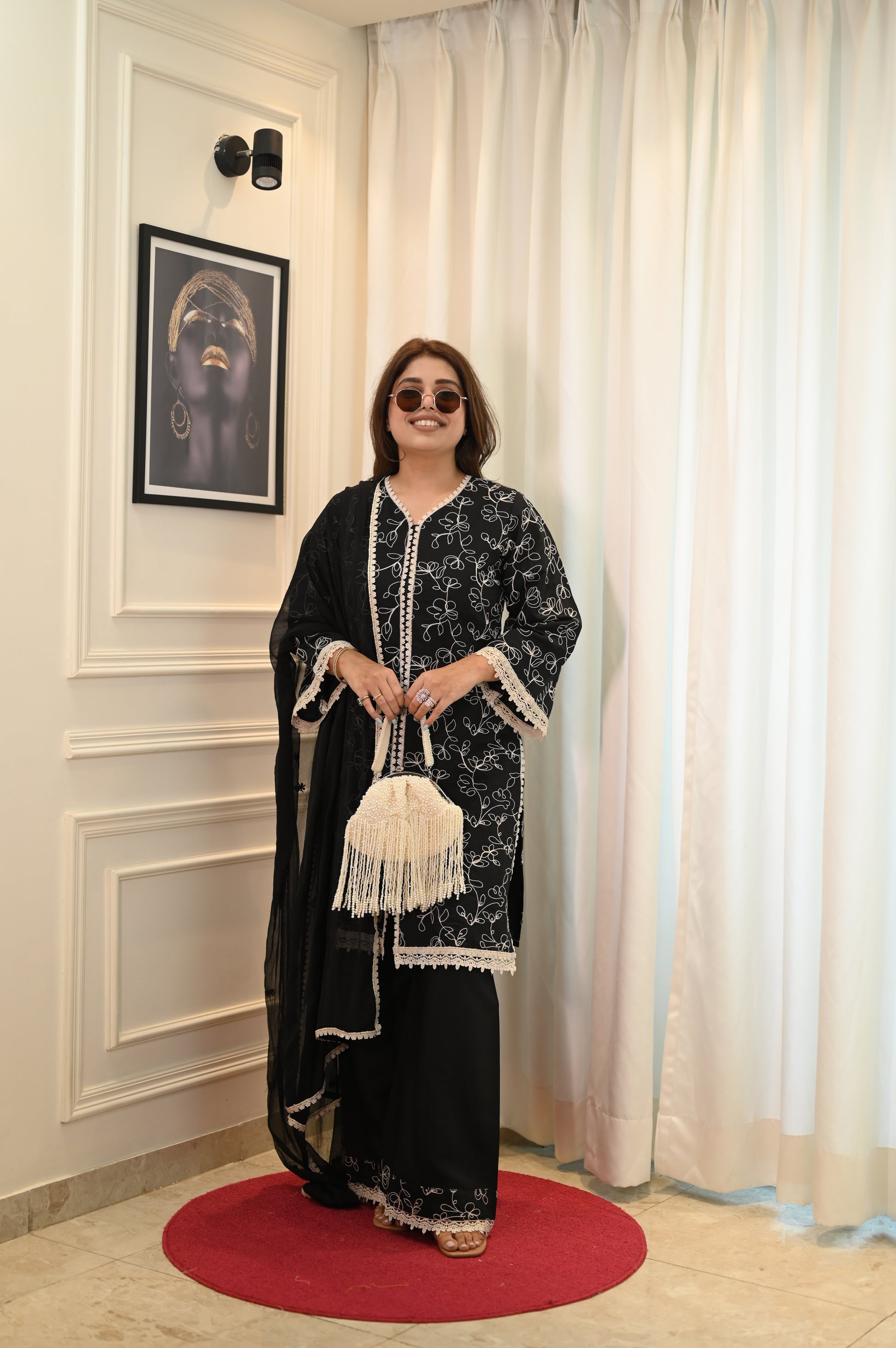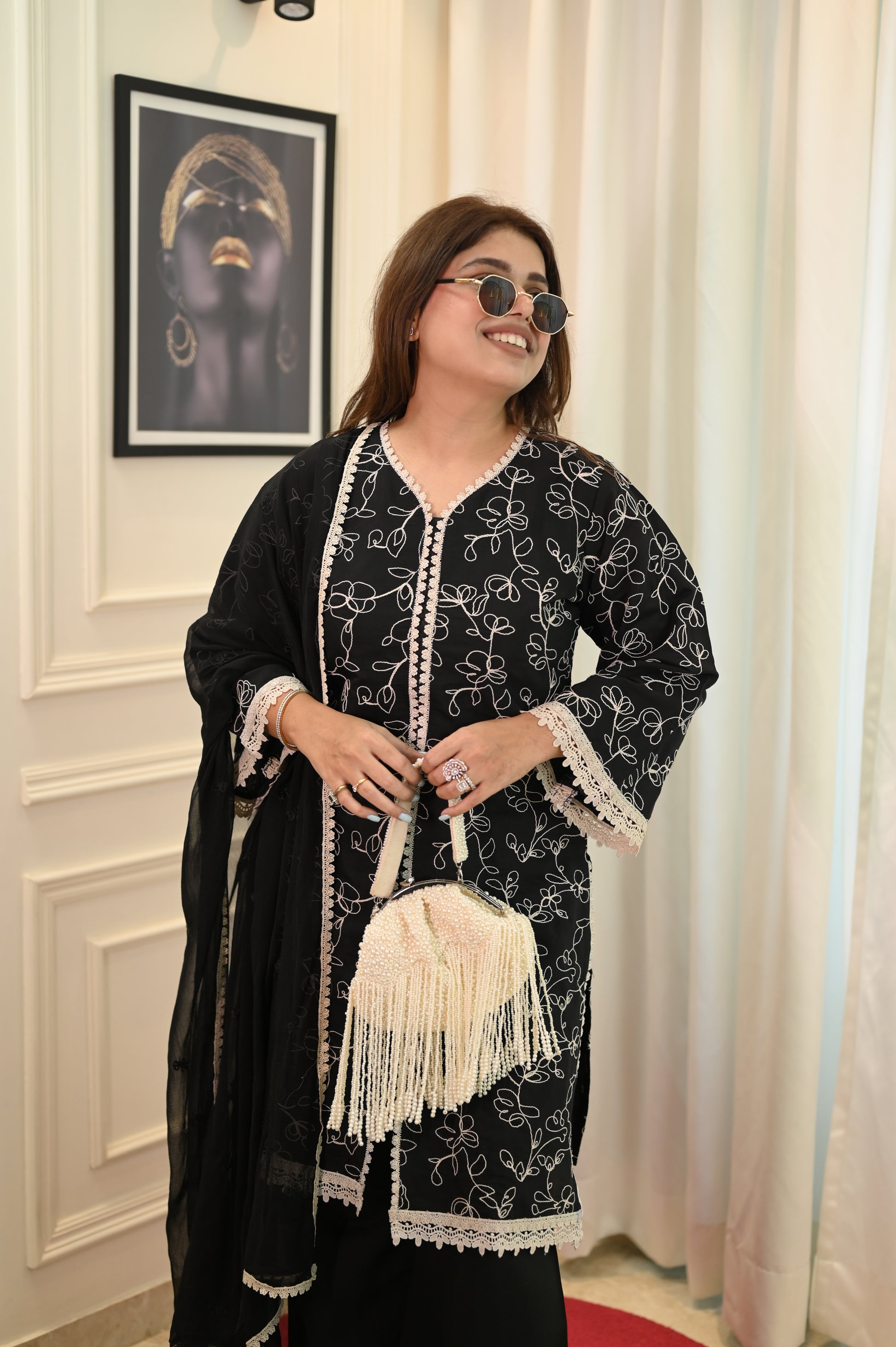 Exclusive Black Embroidered 3-Piece Lawn Suit | Sizes M to XXL