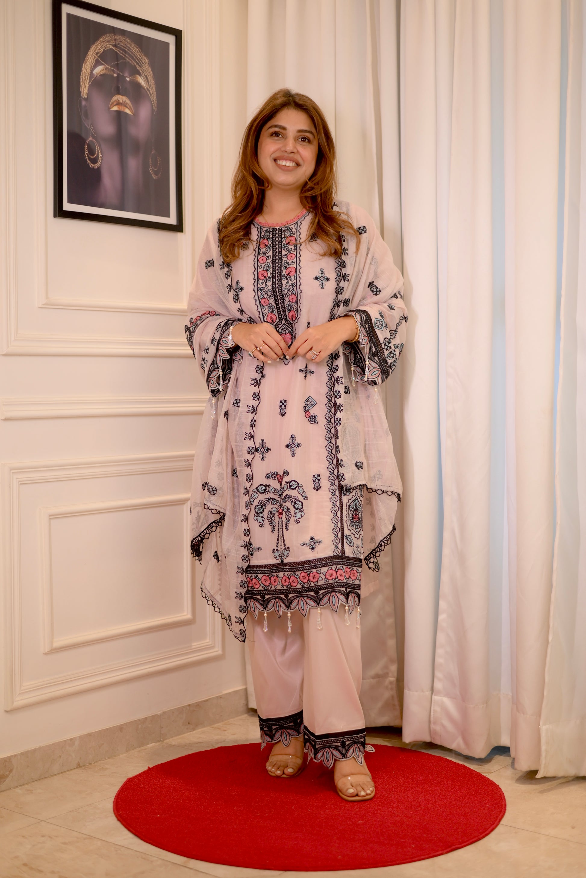 Exclusive Peach Embroidered 3-Piece Lawn Suit | Sizes M to XXL