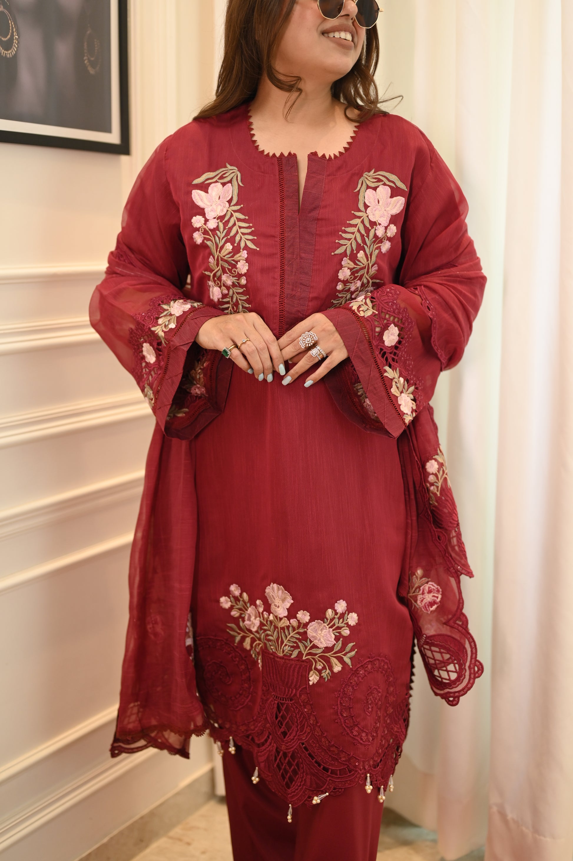- Stunning maroon 3-piece suit set, perfect for wedding season & festive occasions