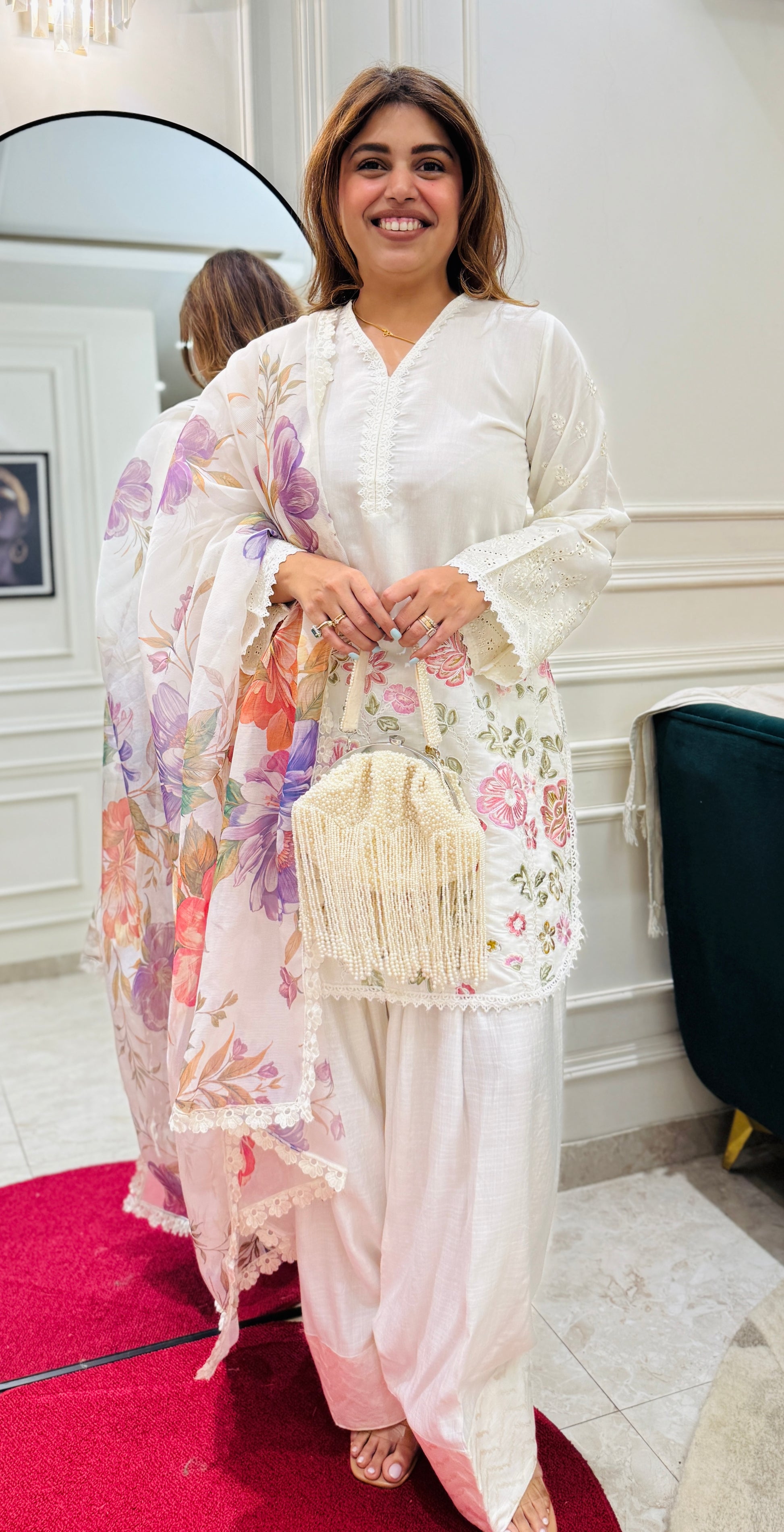 Farshi Premium Cotton white 3piece suit | sizes M to 3XL