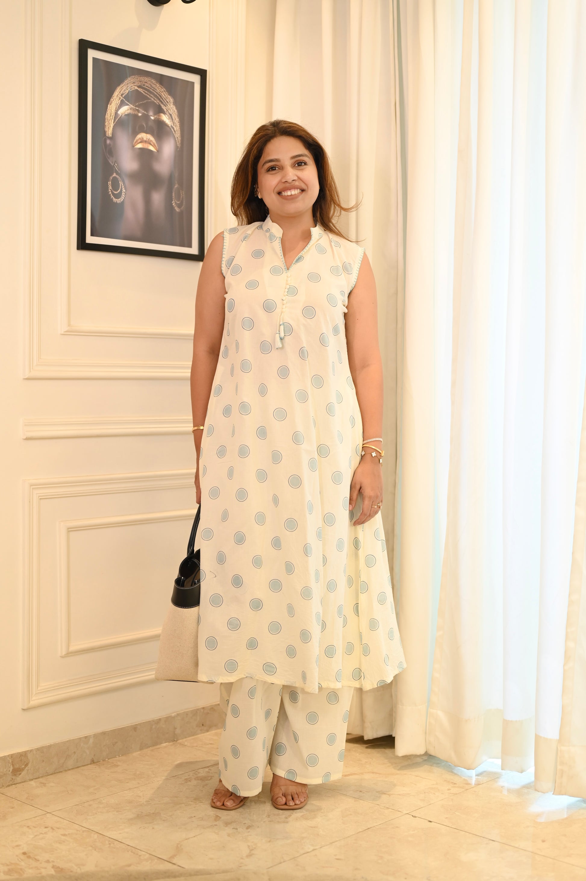Polka Dot Sleeveless Co-ord Set in Ivory White