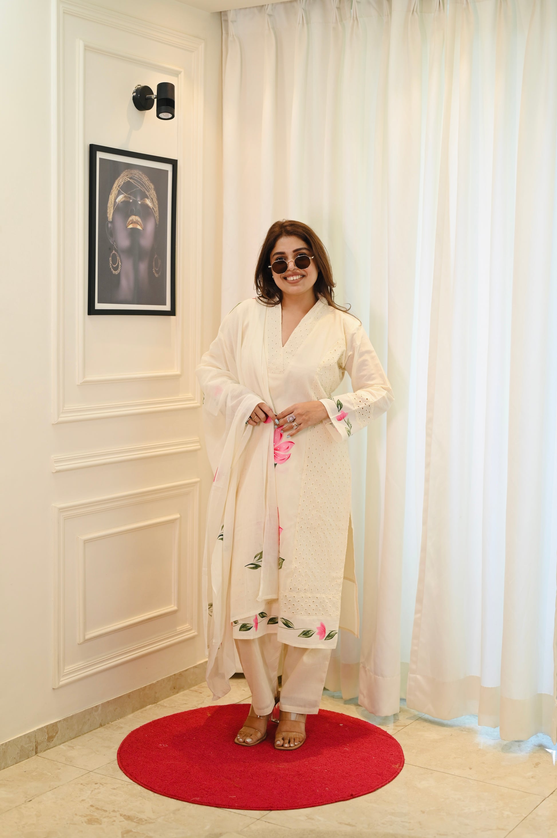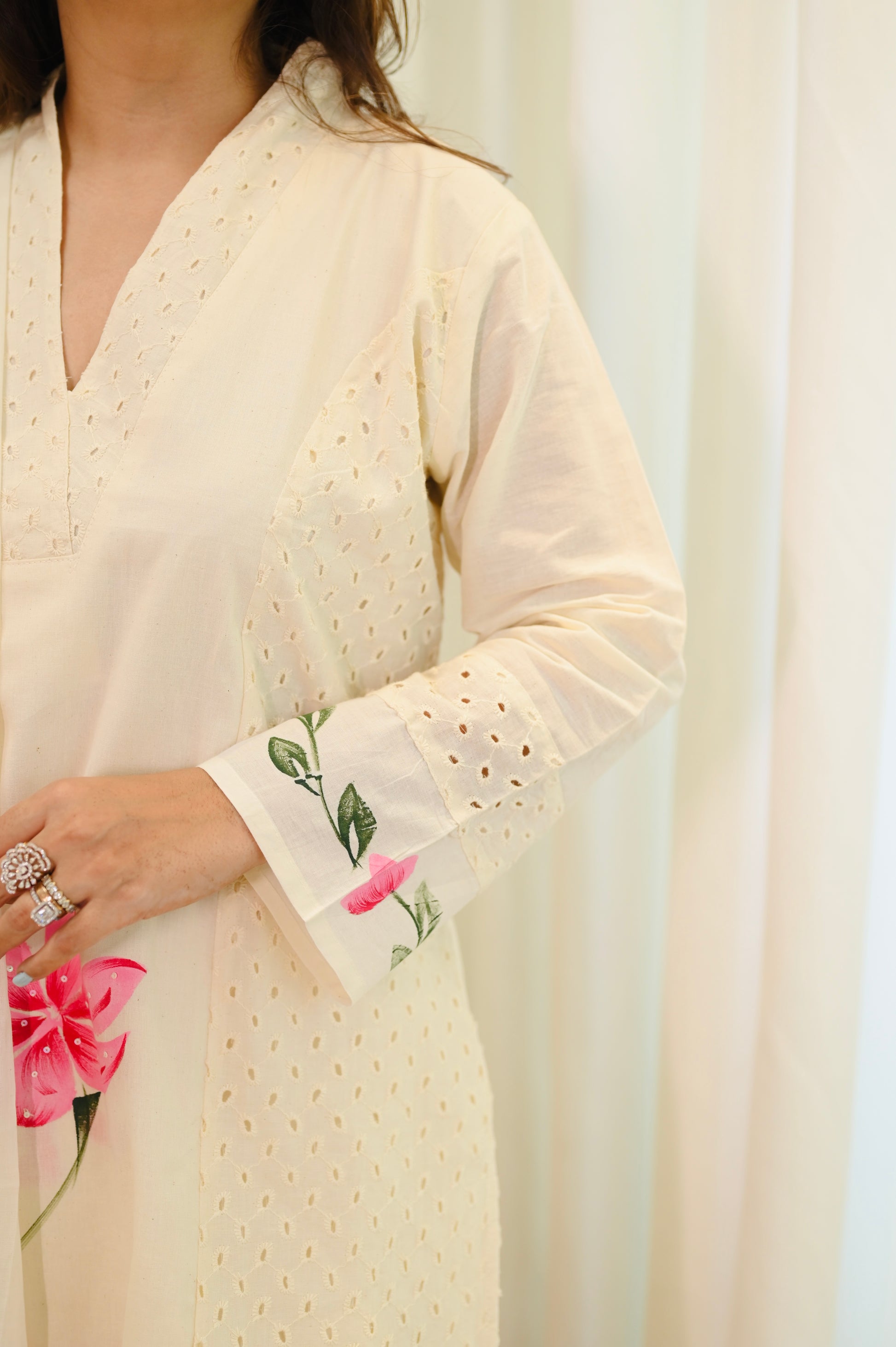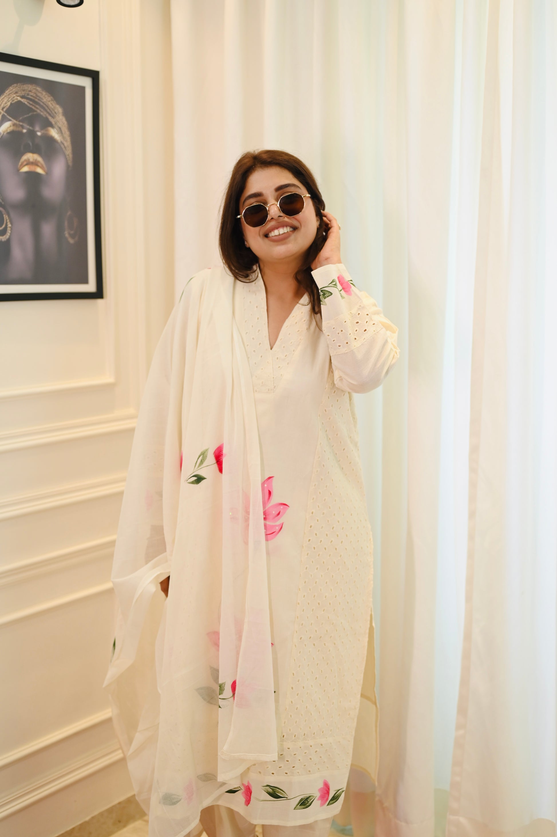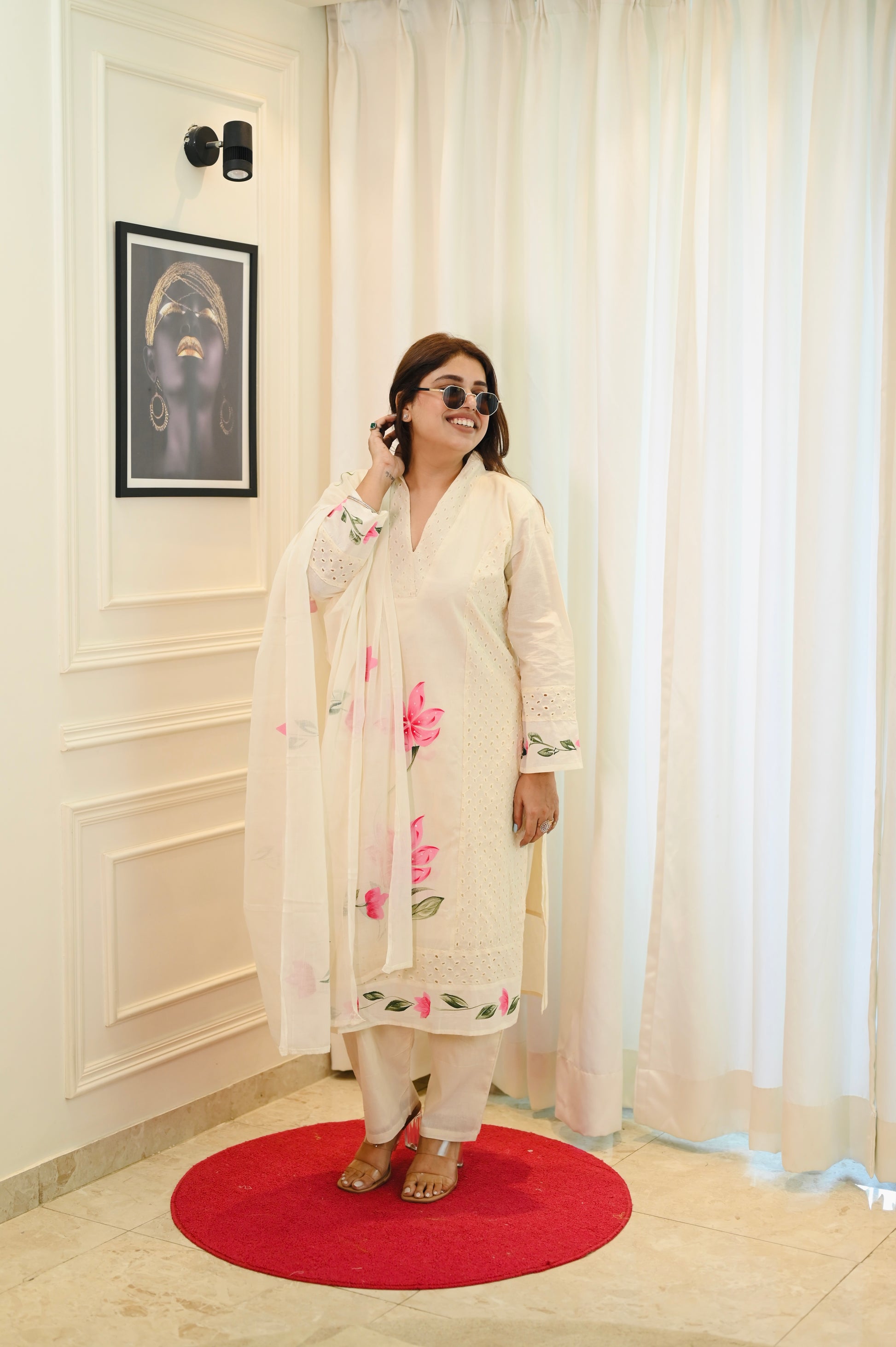 Premium Cream Cotton Plus size 3 piece kurta set | Size - 3XL | 4XL | 5XL