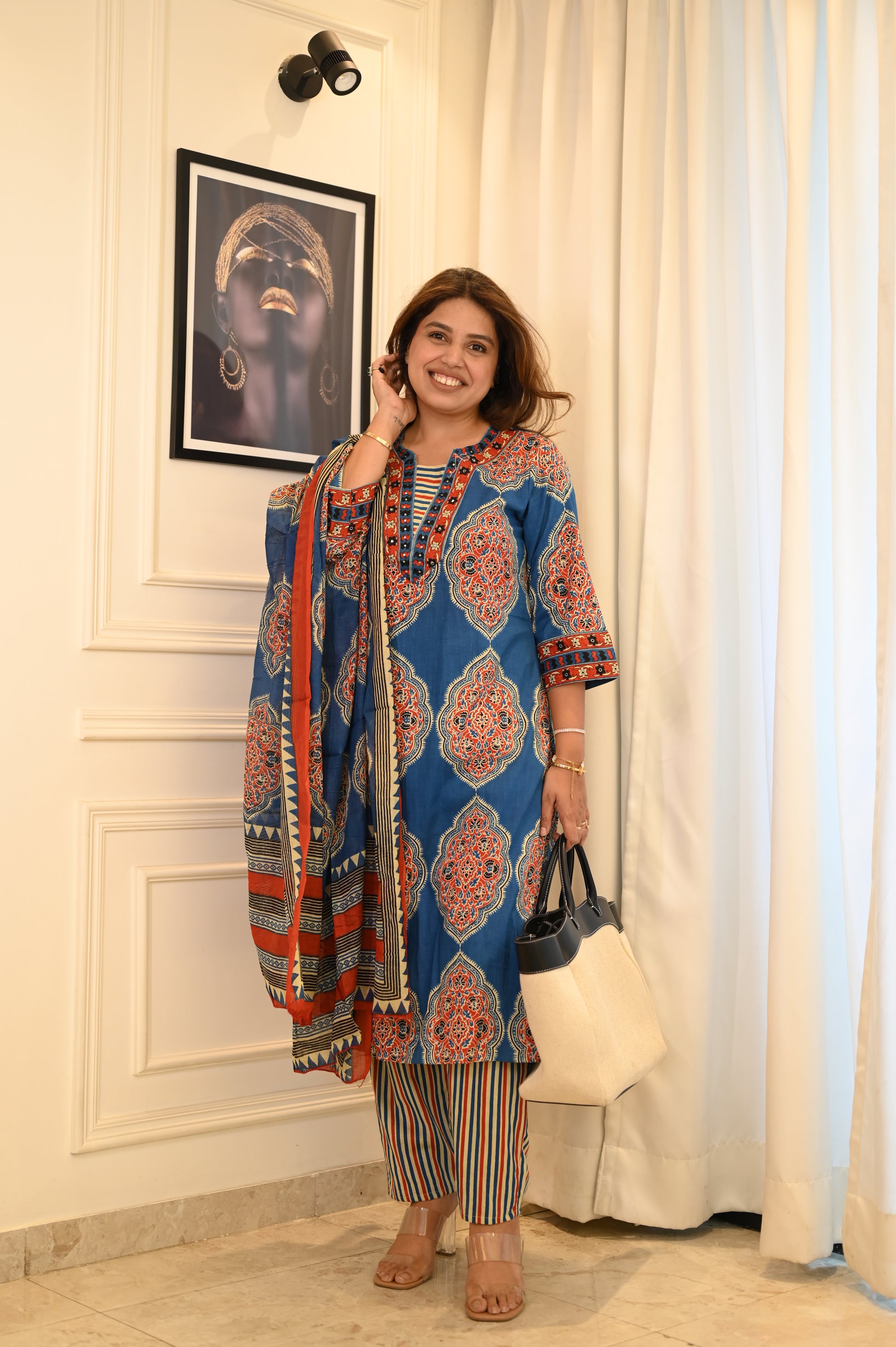 Royal Blue Multicolor Printed Kurta Set with Dupatta