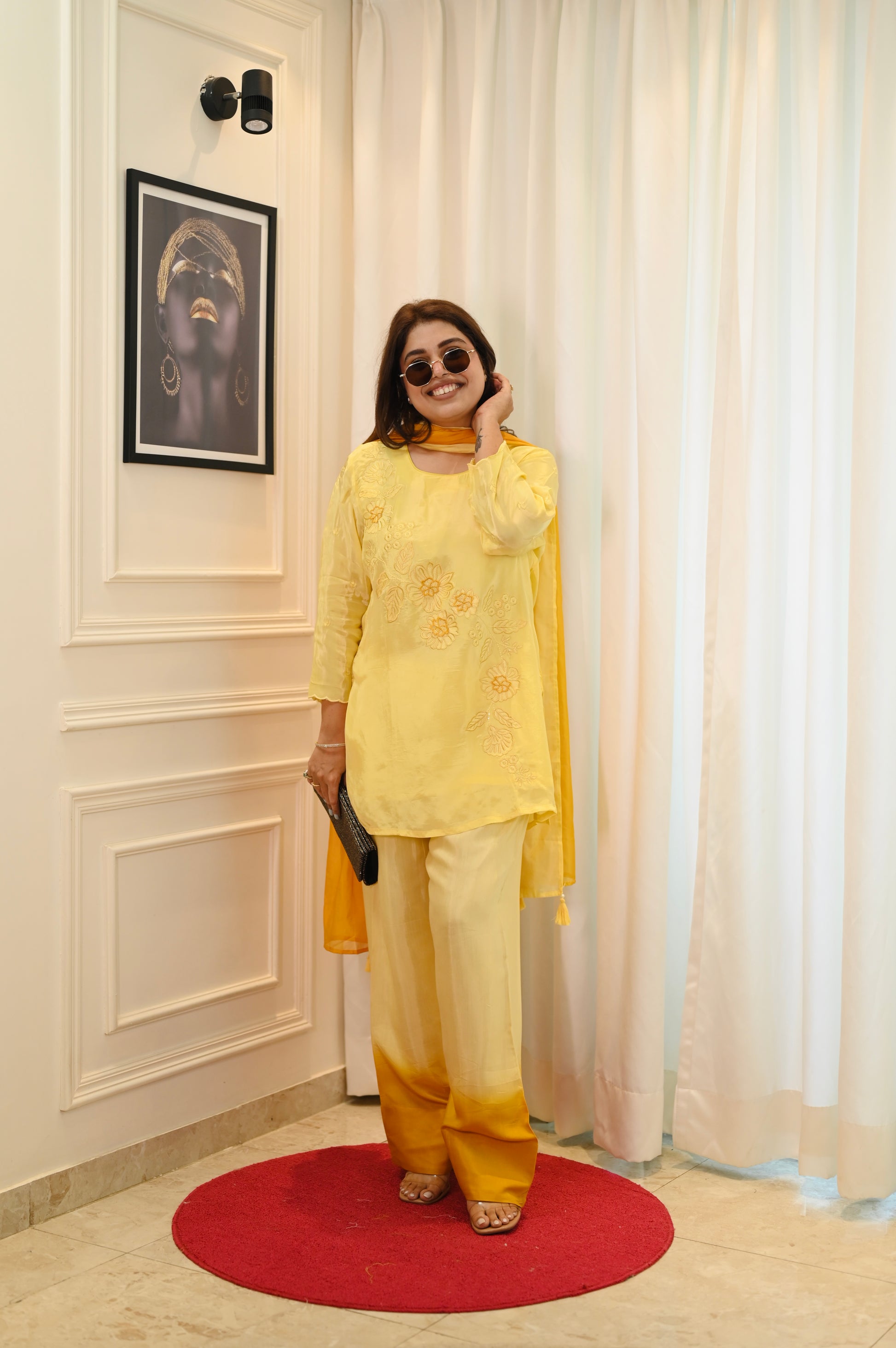 Yellow Farsi Salwar Suit| Russian tissue Fabric